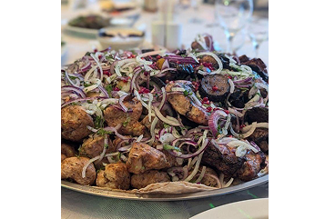Шейка 260гр.,ребра 300 гр., люля 250 гр., корейка баранина 300 гр., корейка свинина 350 гр., картошка по-деревенски 300 гр., овощи на гриле 300 гр., шашлык куриный 250 гр.